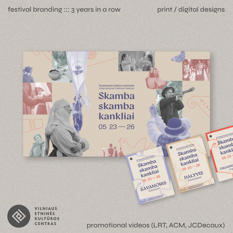 "Pleasant communication, understanding, creativity, attention to detail - these are the qualities we expect when collaborating with a designer. In creating the visual identity for the festival 'Skamba skamba kankliai', Auste fulfilled all these and more expectations both in terms of creative solutions and under pressing time constraints.