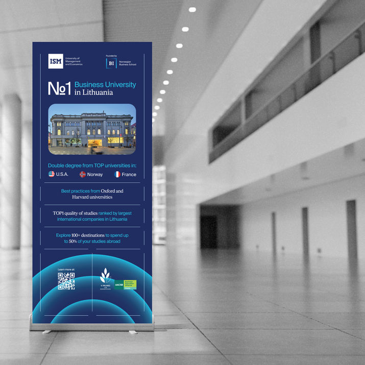 ISM University of Management and Economics is one of the leading business universities in Lithuania. Since 2022, I have been collaborating with ISM as a freelance graphic designer, supporting the promotion of study programs and institutional communication.